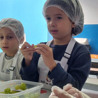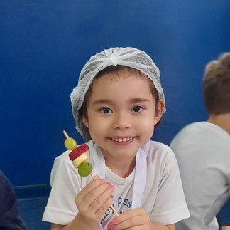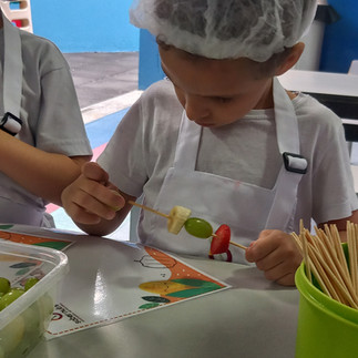 Nossa última Aula de Culinária, coordenada por nossa Equipe de Nutricionistas, foi pra lá de especial. Nossas crianças usaram a imaginação na criação de seus espetinhos de frutas.